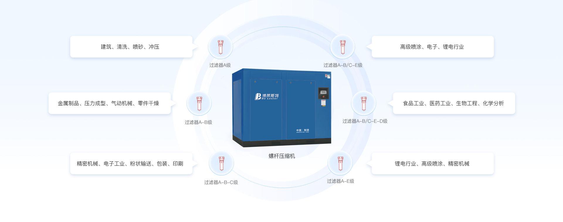 事螺桿式壓縮機(jī)、冷凍式干燥機(jī)、吸附式干燥機(jī)、真空泵、高精密過濾器等空氣動力系統(tǒng)設(shè)備研發(fā)、